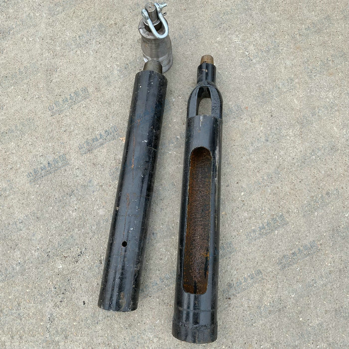用提砂筒撈取砂卵石等的工具有提引接頭、加重桿、活接頭、提砂筒。在砂層和卵石層鉆進(jìn)時必須下套管,以保護(hù)孔壁防止塌孔。一般用成套自由鉗和鏈條鉗人力往復(fù)推轉(zhuǎn)隨沖擊進(jìn)尺而往下伸進(jìn)。