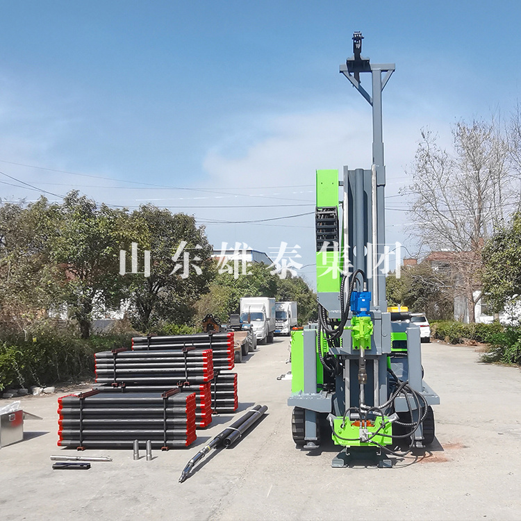 山東雄泰機械集團自主研發(fā)生產(chǎn)的履帶式全液壓巖心鉆機,我廠技術(shù)人員在現(xiàn)場售后指導(dǎo)施工中。