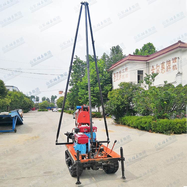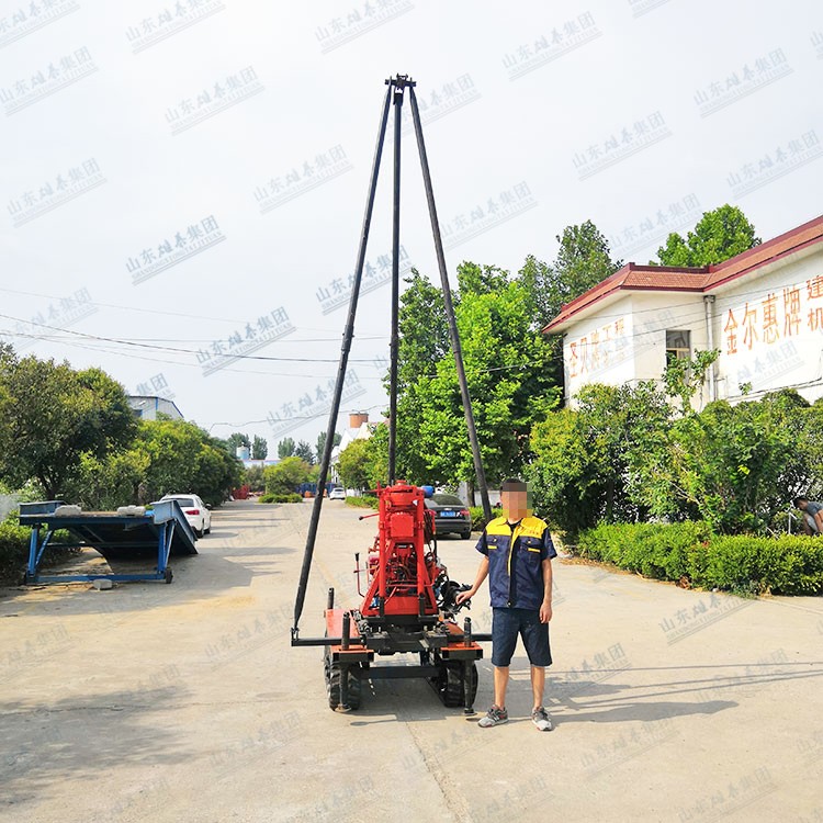 我廠生產(chǎn)的BZ-50SL型鉆機,是在50系列鉆機的基礎上升級改造的,解決了傳統(tǒng)小型液壓鉆機鉆桿短,鉆進時需要反復提鉆下鉆的作業(yè)模式,該機型新增了履帶底盤,減輕了用戶的轉(zhuǎn)場負擔,提高了作業(yè)效率,鉆桿取芯鉆具等放在底盤上,發(fā)動機器就可以轉(zhuǎn)場了,同時增加了移機功能,鉆桿長度達到2米,鉆塔高度4.5米,精簡了作業(yè)流程,換桿不需要拆卸牛頭,提升了鉆進速度。